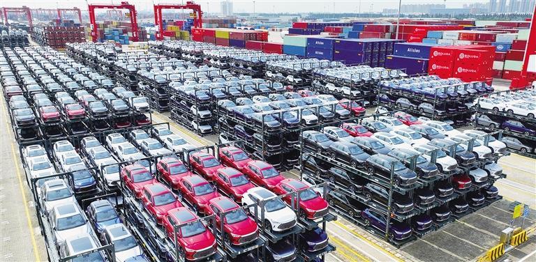 9月11日,江苏省苏州港太仓港区国际集装箱码头,一批新能源汽车即将通过可折叠车辆框架箱出口。据太仓海关统计,今年1月份至8月份,太仓港口岸出口汽车23.2万辆,同比增长4.5倍。其中,出口新能源汽车12万辆,同比增长19.8倍。