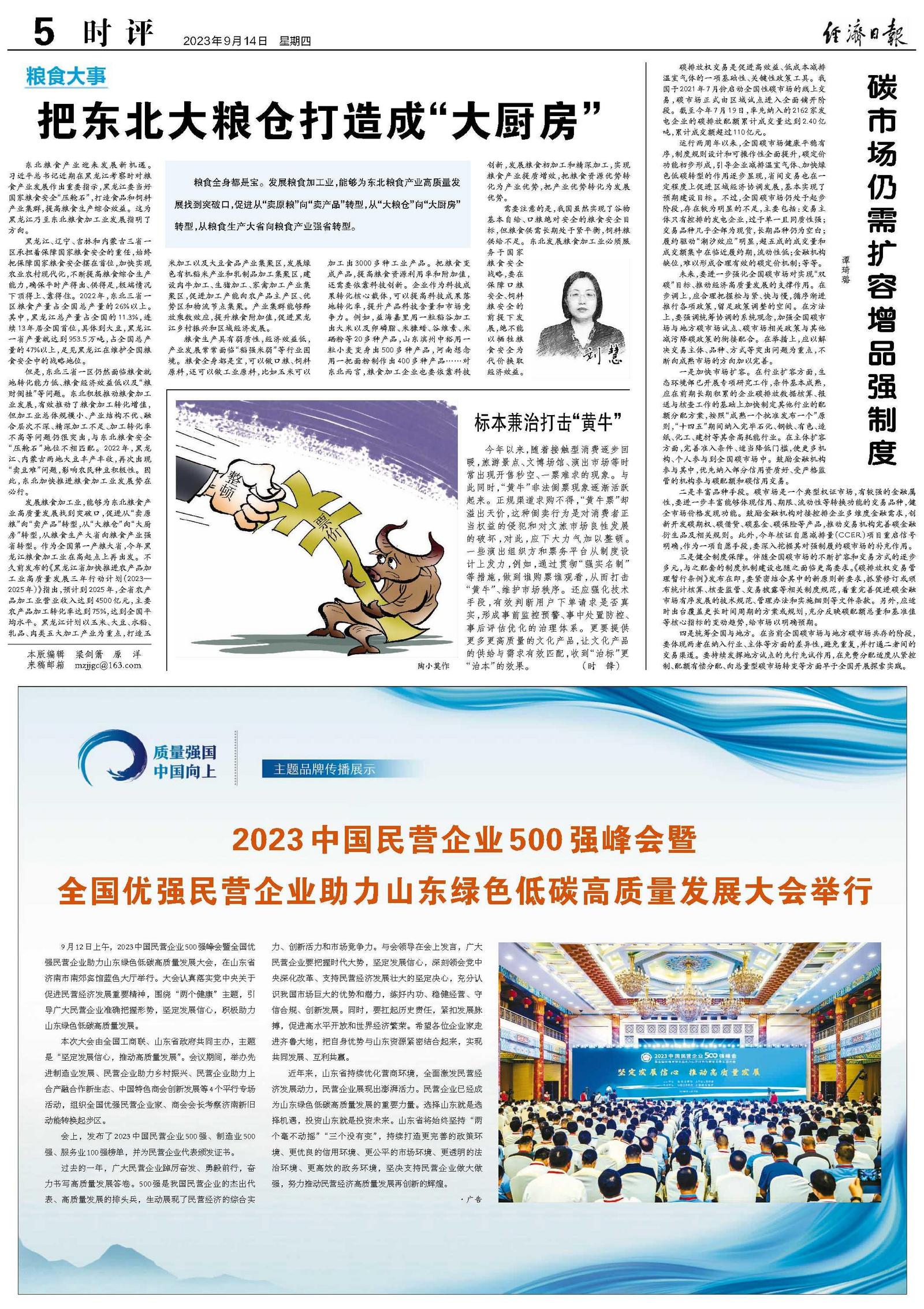 9月12日上午,2023中国民营企业500强峰会暨全国优强民营企业助力山东绿色低碳高质量发展大会,在山东省济南市南郊宾馆蓝色大厅举行。大会认真落实党中央关于促进民营经济发展重要精神,围绕“两个健康”主题,引导广大民营企业准确把握形势,坚定发展信心,积极助力山东绿色低碳高质量发展。