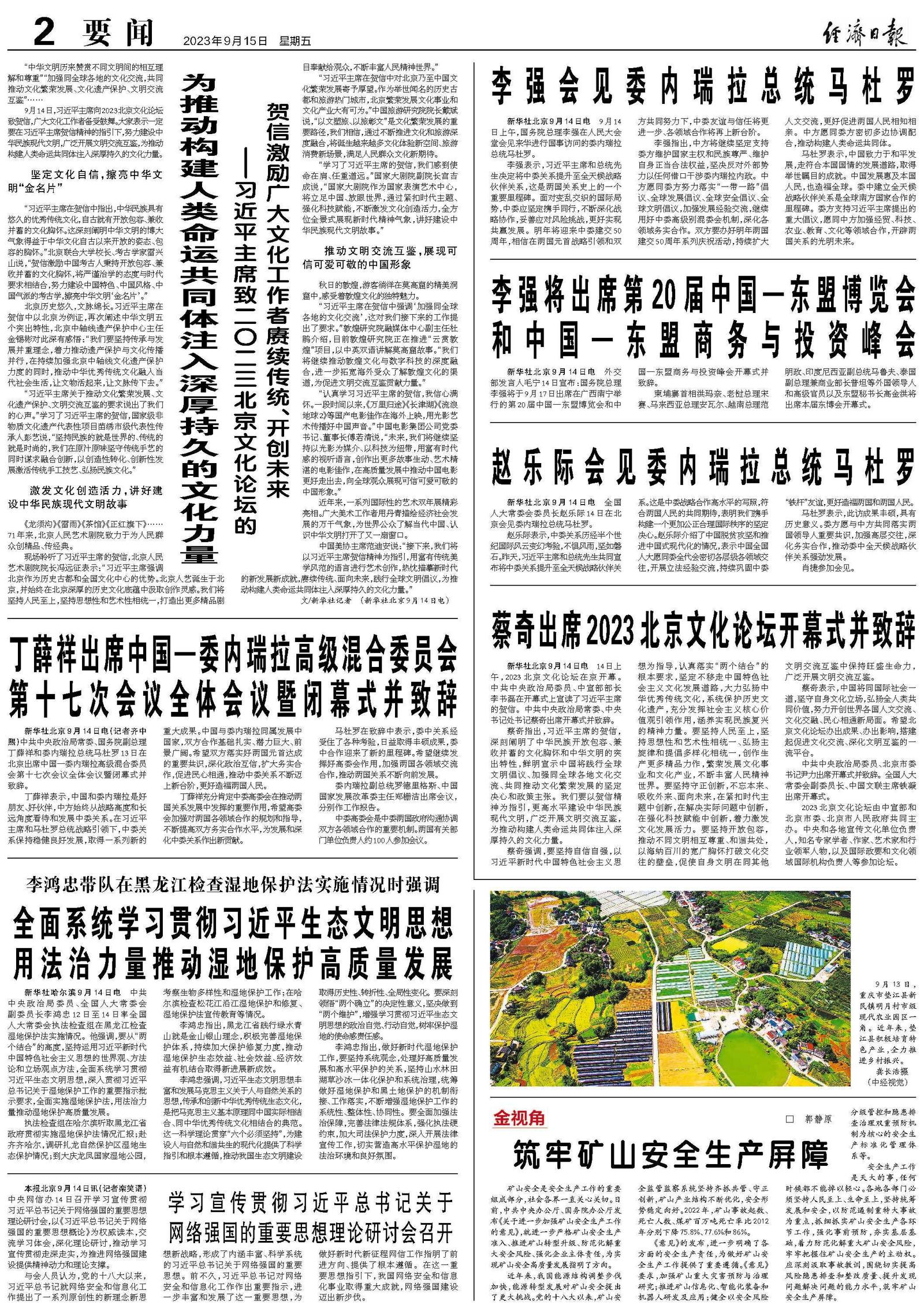 9月14日,习近平主席向2023北京文化论坛致贺信,广大文化工作者备受鼓舞。大家表示一定要在习近平主席贺信精神的指引下,努力建设中华民族现代文明,广泛开展文明交流互鉴,为推动构建人类命运共同体注入深厚持久的文化力量。