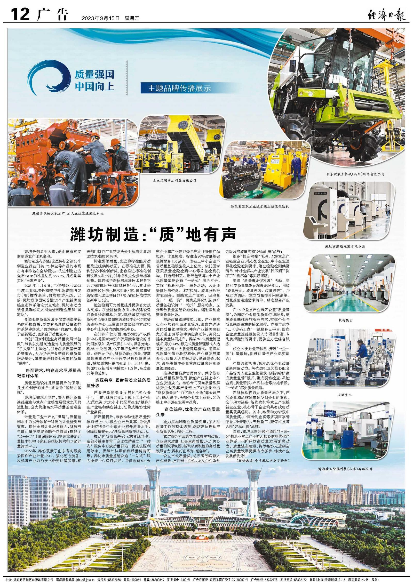 制造业高质量发展不仅要创造出领先的科技成果,更要有先进的质量管控体系保障落地。“潍坊制造”的底气,来自于创新驱动,也来自于质量变革。