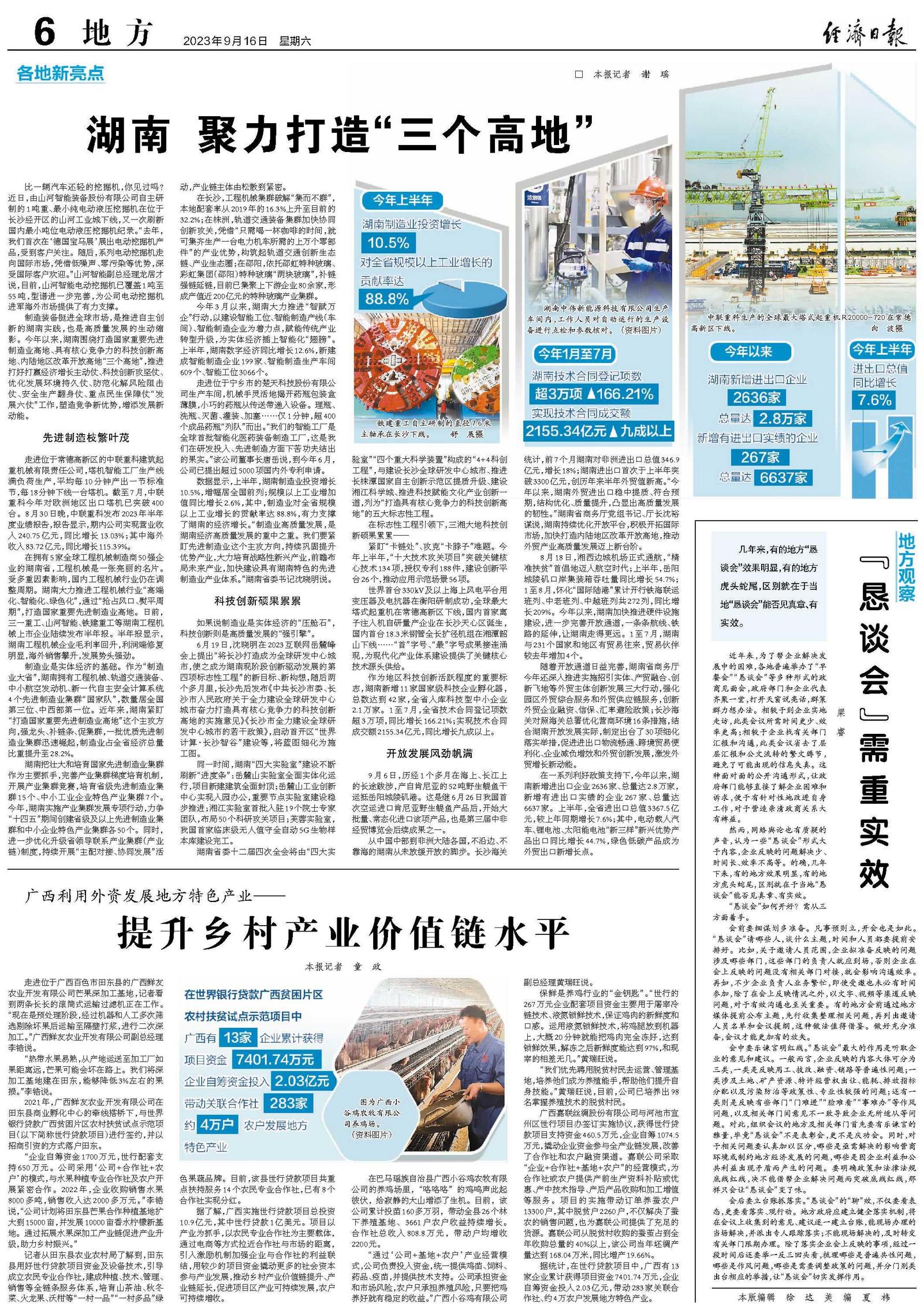 制造装备挺进全球市场,是推进自主创新的湖南实践,也是高质量发展的生动缩影。今年以来,湖南围绕打造国家重要先进制造业高地、具有核心竞争力的科技创新高地、内陆地区改革开放高地“三个高地”,推进打好打赢经济增长主动仗、科技创新攻坚仗、优化发展环境持久仗、防范化解风险阻击仗、安全生产翻身仗、重点民生保障仗“发展六仗”工作,塑造竞争新优势,增添发展新动能。