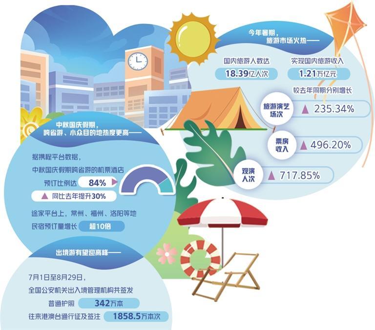 人头攒动的机场、火车站,熙熙攘攘的景区等,成为旅游市场复苏的鲜明印证。中国旅游研究院测算,今年暑期全国国内旅游人次达18.39亿人次,实现国内旅游收入1.21万亿元,多数目的地接待游客人数达到历史最高水平。