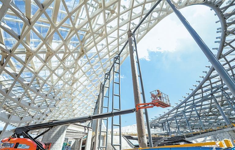 9月19日,浙江省台州机场改扩建项目施工现场,工人正在进行墙面喷漆等装修工作。据了解,台州机场改扩建项目总投资约35.88亿元,项目完工后年旅客吞吐量将提升至250万人次。孙金标摄(中经视觉)