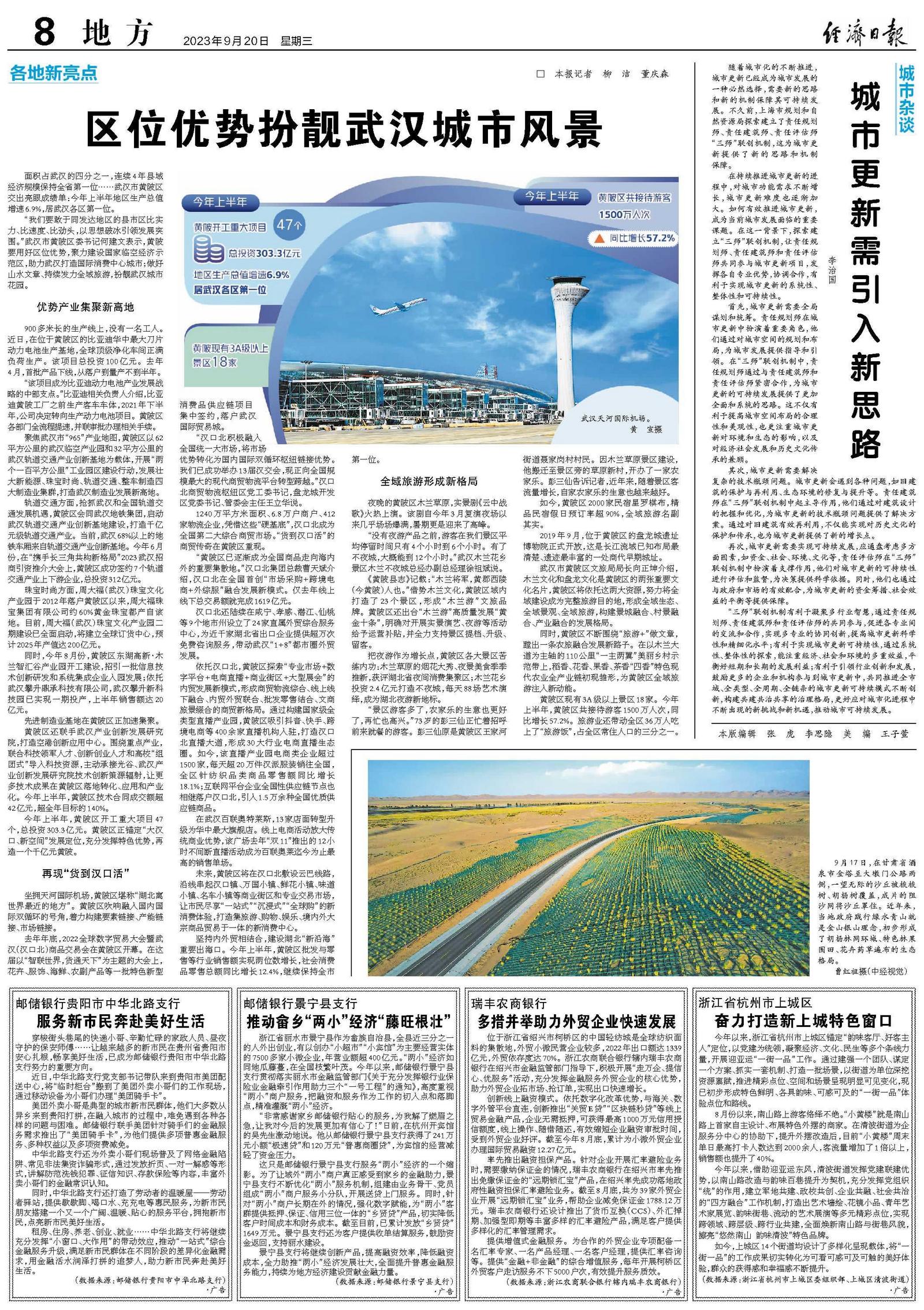 “我们要敢于同发达地区的县市区比实力、比速度、比劲头,以思想破冰引领发展突围。”武汉市黄陂区委书记何建文表示,黄陂要用好区位优势,聚力建设国家临空经济示范区,助力武汉打造国际消费中心城市;做好山水文章、持续发力全域旅游,扮靓武汉城市花园。