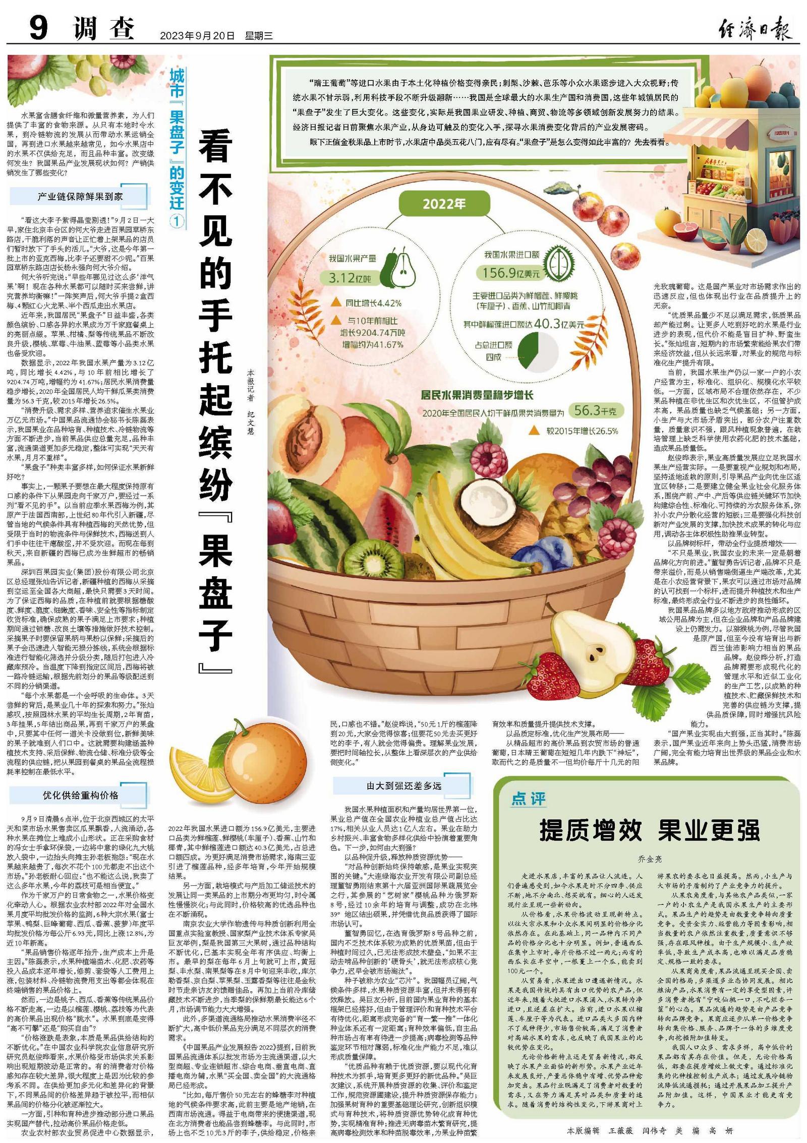 走进水果店,丰富的果品让人流连。人们普遍感受到,如今水果是时不分四季、供应不断,地不分南北、想买就有。细心的人还发现行业呈现一些新动向。