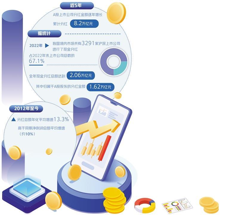 截至2022年,连续5年分红的公司占比从10年前的20%提升至48%,连续10年分红的公司占比由8%提升至31%;412家上市公司分红金额连续3年增长,占比由10年前的3%增长至12%,连续5年增长的公司占比由1%增长至4%。