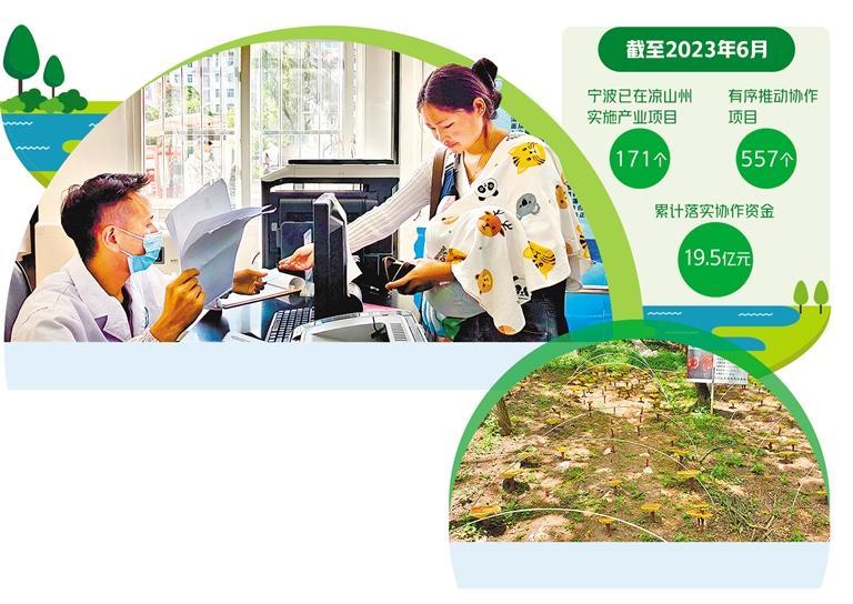 一期投资1000万元的三乐灵芝产业园是宁波市象山县在四川省雷波县的援建项目之一。根据中央统一部署,新一轮东西部协作浙江全面结对帮扶四川,宁波市全面结对帮扶凉山彝族自治州。两年多来,宁波市针对凉山州的帮扶涉及产业、劳务及消费、民生等多个方面。截至2023年6月,宁波已累计落实协作资金19.5亿元,有序推动协作项目557个。两地政府部门通力协作,帮助凉山州守住不发生规模性返贫这条底线,不断巩固拓展脱贫攻坚成果,为乡村振兴赋能蓄力。