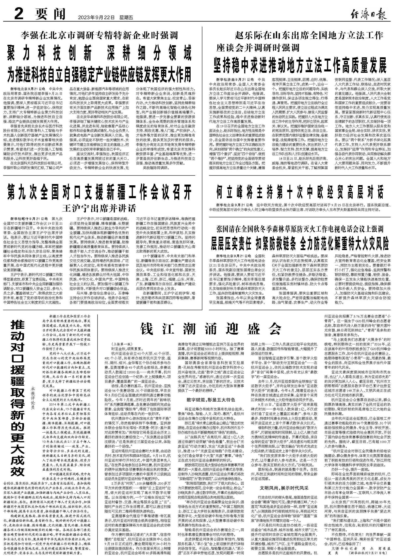 新华社喀什9月21日电 第九次全国对口支援新疆工作会议19日至21日在新疆喀什召开。中共中央政治局常委、全国政协主席王沪宁出席并讲话。他表示,要以习近平新时代中国特色社会主义思想为指导,完整准确全面贯彻新时代党的治疆方略,牢牢把握新疆社会稳定和长治久安总目标,聚焦铸牢中华民族共同体意识主线,以高度责任感和使命感推动对口援疆工作更高质量开展,在中国式现代化进程中更好建设美丽新疆。