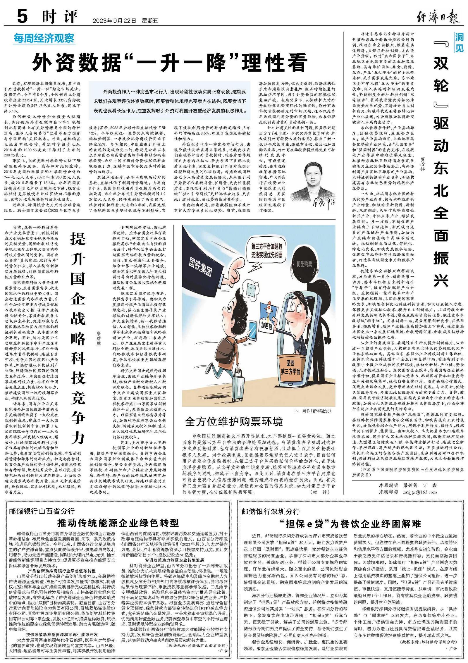 还应完善国有经济布局,发挥需求引导作用。要加大力度推动传统产业高端化数智化绿色化,强化在重要传统产业领域的创新优势和支撑能力;加大在新材料、新一代移动通信、人工智能、生物技术和脑科学等未来新兴领域培育战略性新兴产业,布局抢占未来产业。以产业发展需求引导重大科技创新,激发共性关键技术、战略性技术和颠覆性技术研发,争取尽快在重要领域赢得战略主动。