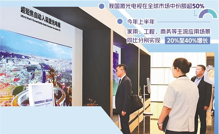 《2023年激光显示产业高质量发展白皮书》显示,今年以来,激光电视在海外进入了售价3000美元至5000美元的高端市场,在新加坡、印度尼西亚、阿联酋、俄罗斯等国家和地区销量增幅达266%。“在激光电视、激光电影放映机、激光工程投影及车载显示领域,将形成千亿元级规模的新兴产业。”许祖彦说。