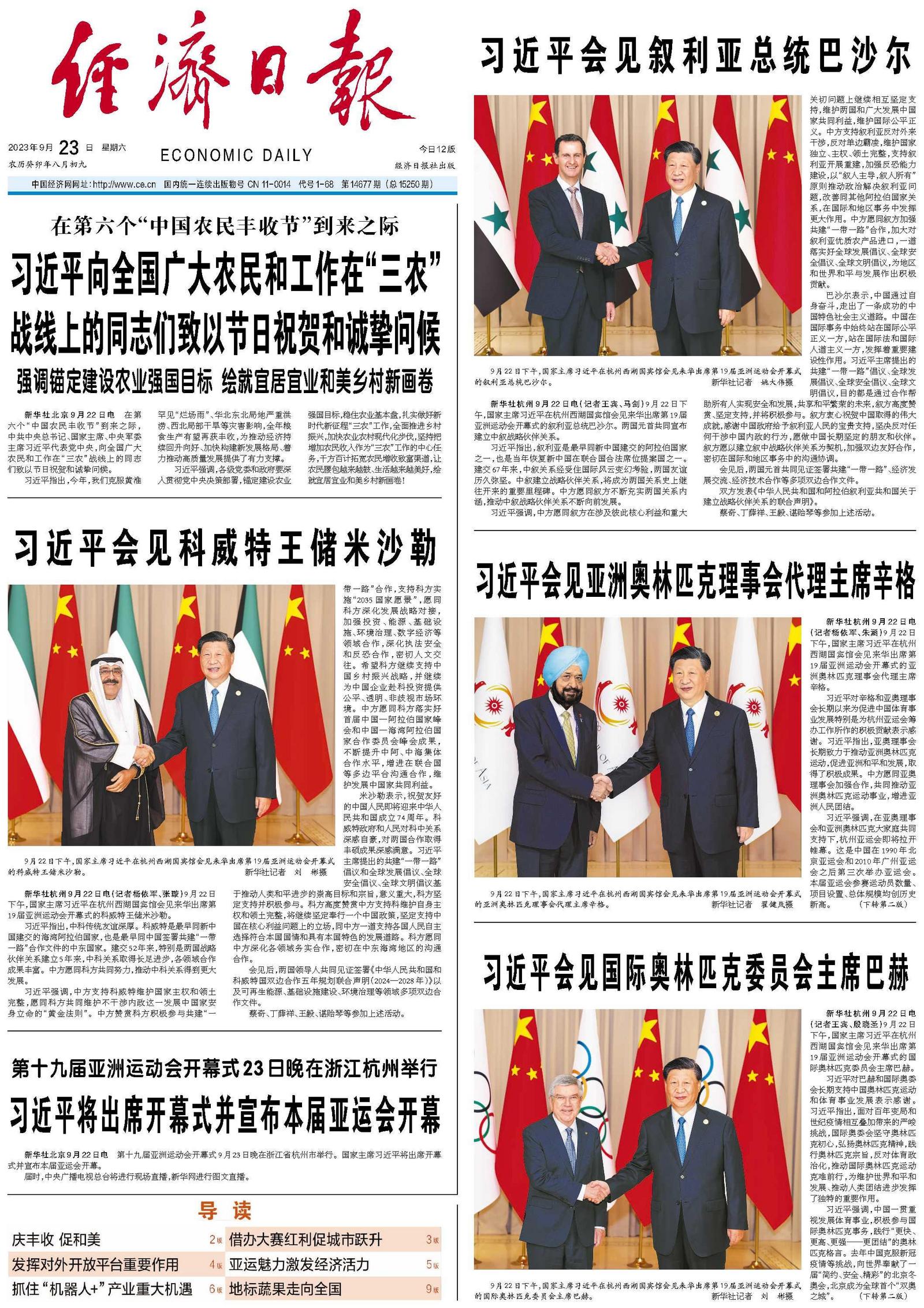 9月22日下午,国家主席习近平在杭州西湖国宾馆会见来华出席第19届亚洲运动会开幕式的叙利亚总统巴沙尔。新华社记者 姚大伟摄