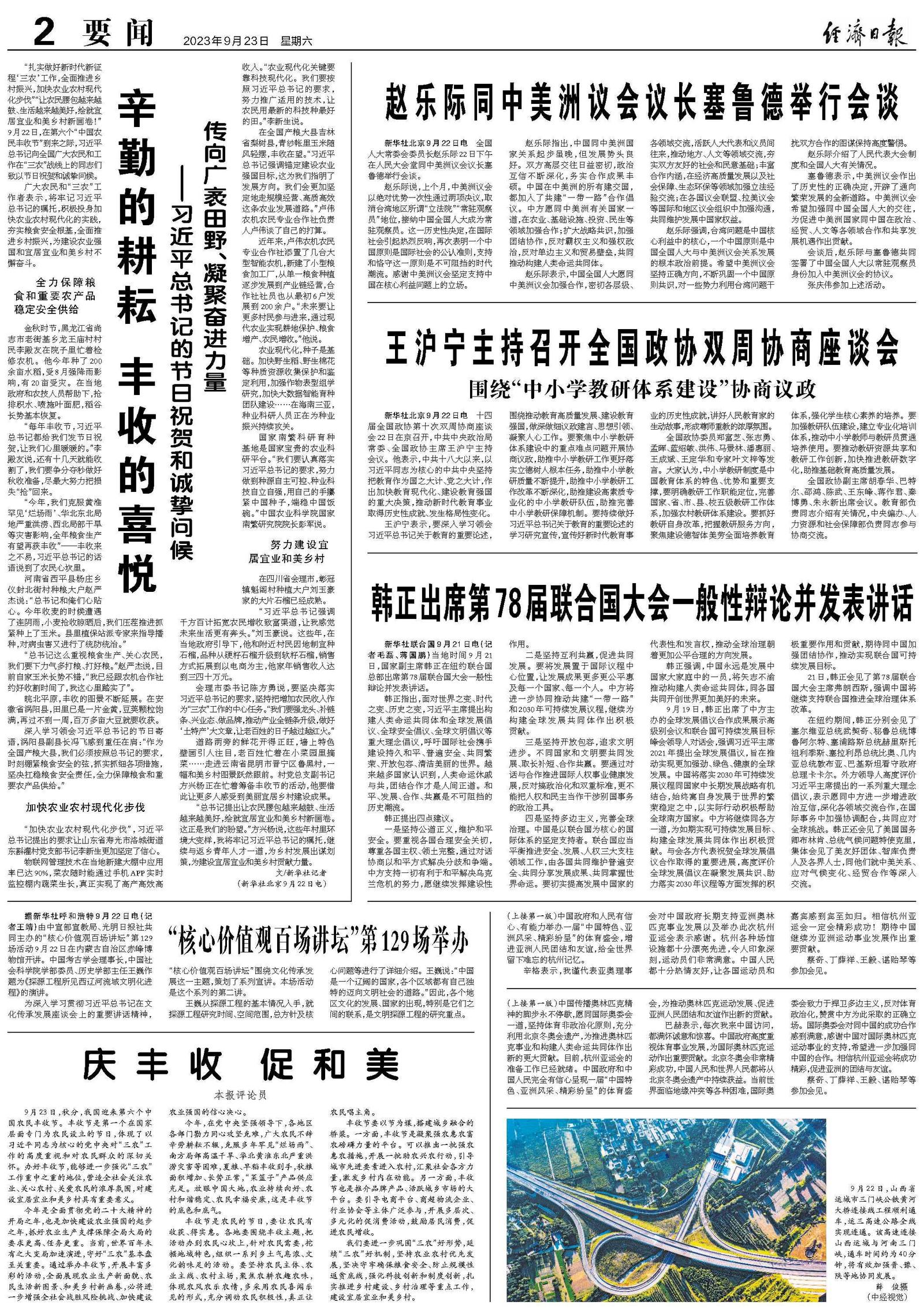 9月19日,韩正出席了中方主办的全球发展倡议合作成果展示高级别会议和联合国可持续发展目标峰会领导人对话会,强调习近平主席2021年提出全球发展倡议,旨在推动实现更加强劲、绿色、健康的全球发展。中国将落实2030年可持续发展议程同国家中长期发展战略有机结合,始终寓自身发展于世界的繁荣稳定之中,以实际行动积极帮助全球南方国家。中方将继续同各方一道,为如期实现可持续发展目标、构建全球发展共同体作出积极贡献。与会各方代表祝贺全球发展倡议合作取得的重要进展,高度评价全球发展倡议在凝聚发展共识、助力落实2030年议程等方面发挥的积极重要作用和贡献,期待同中国加强团结协作,推动实现联合国可持续发展目标。