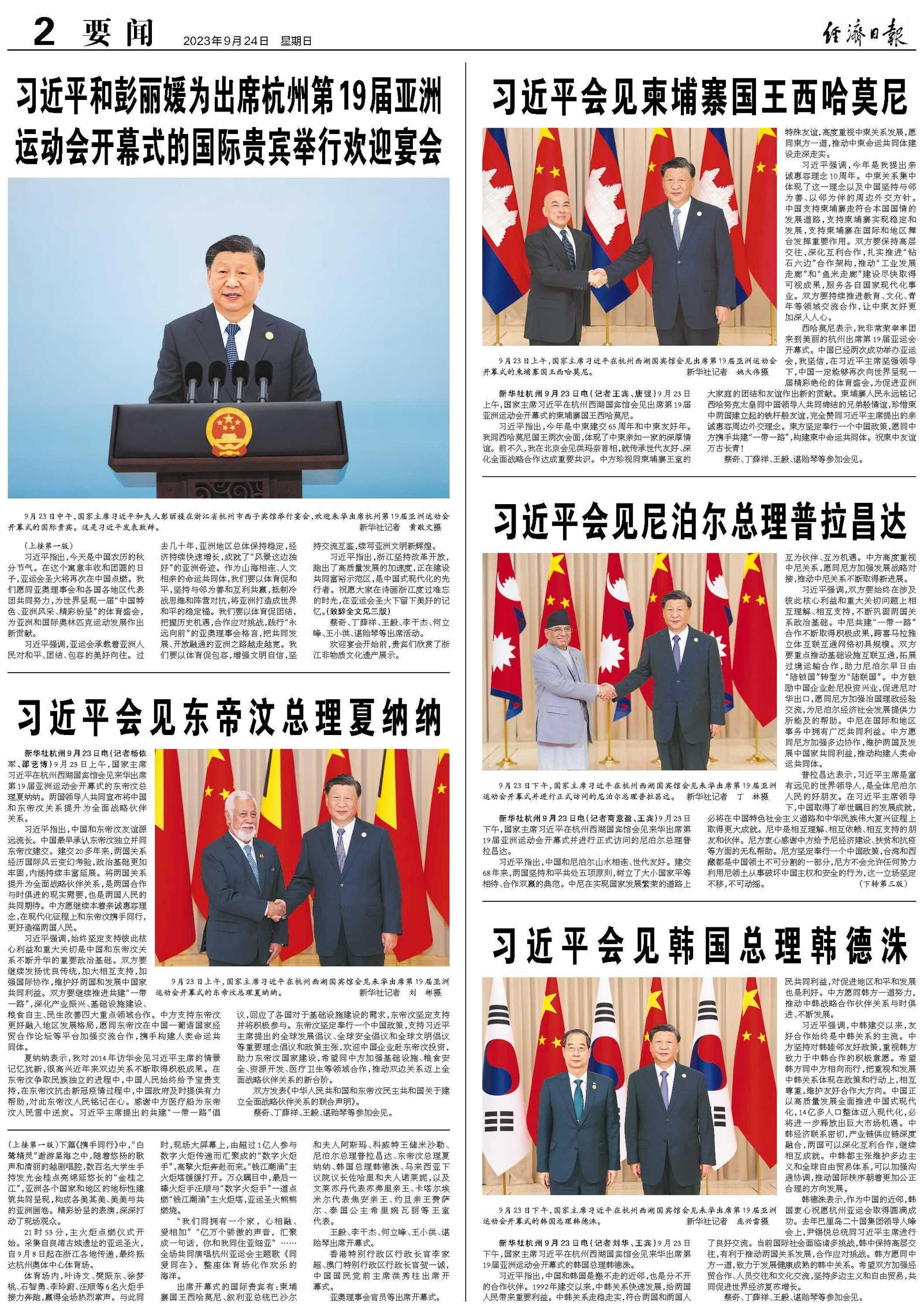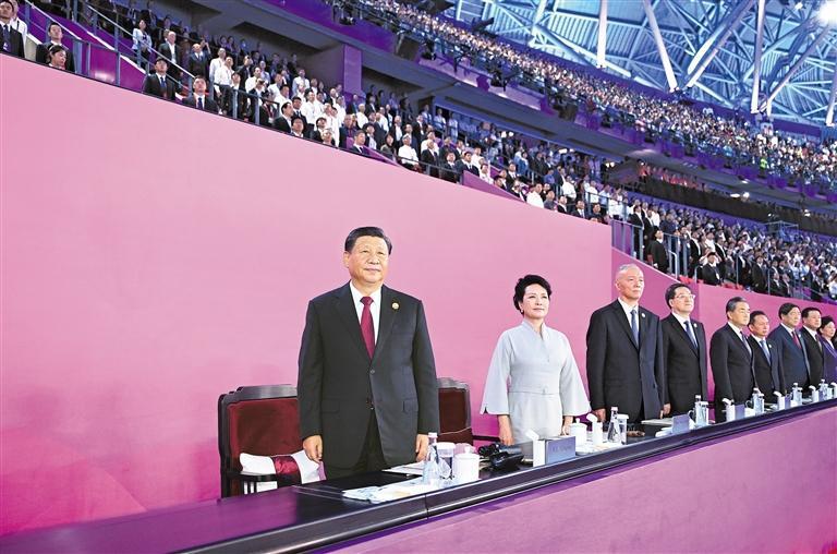 新华社杭州9月23日电 潮涌钱江喜迎盛会,携手同行共创未来。第十九届亚洲运动会23日晚在浙江省杭州市隆重开幕。国家主席习近平出席开幕式并宣布本届亚运会开幕。