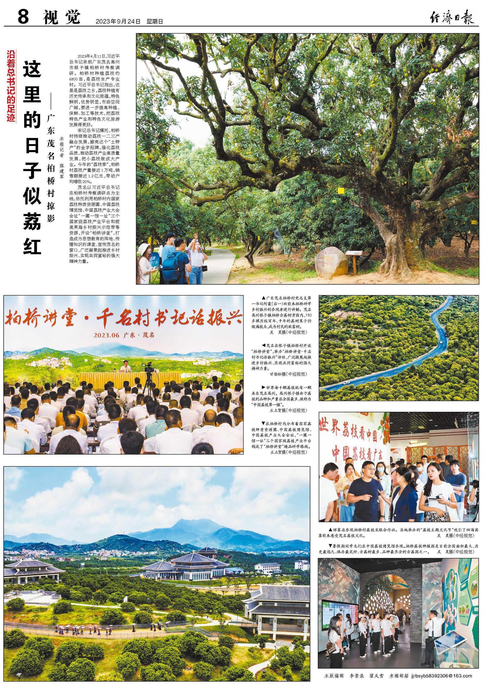 茂名以习近平总书记在柏桥村考察调研点为主线,依托利用柏桥村内国家荔枝种质资源圃、中国荔枝博览馆、中国荔枝产业大会会址“一圃一馆一址”三个国家级荔枝产业平台和甜美果海乡村振兴示范带等资源,开设“柏桥讲堂”,打造成为思想教育的阵地、传播知识的课堂、宣传茂名的窗口,广泛凝聚起推进乡村振兴、实现共同富裕的强大精神力量。