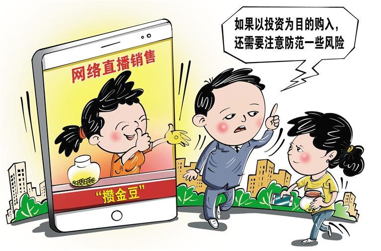 购买黄金首饰、金条、金币、金块等实物黄金,是人们较为熟悉的黄金投资方式。不过,近一段时间以来,以“金豆豆”为主的“1克金”商品蹿红,相关产品在线上线下热销,攒金豆、盯金价、蹲直播成为不少年轻人的日常。其中更是有很多年轻人以带有一定投资理财目的跟风攒金豆。相比各类基金和理财产品,黄金的特有属性更能体现稳定保值的价值。而且相比10克、50克、100克的金条而言,轻至1克的黄金在花费上并不高,这种能够轻松入局的情况似乎对年轻人更为友好。但从总体看,“金豆豆”并不是一本万利,无论哪种投资,都存在一定风险。当前“金豆豆”销售渠道鱼龙混杂,特别是网上商家良莠不齐,购买“金豆豆”应尽量选择正规渠道。消费者应在投资时了解相关投资产品,选择适合自己的投资方式,不能盲目跟风,以免被不法商家乘虚而入造成经济损失。 (时 锋)
