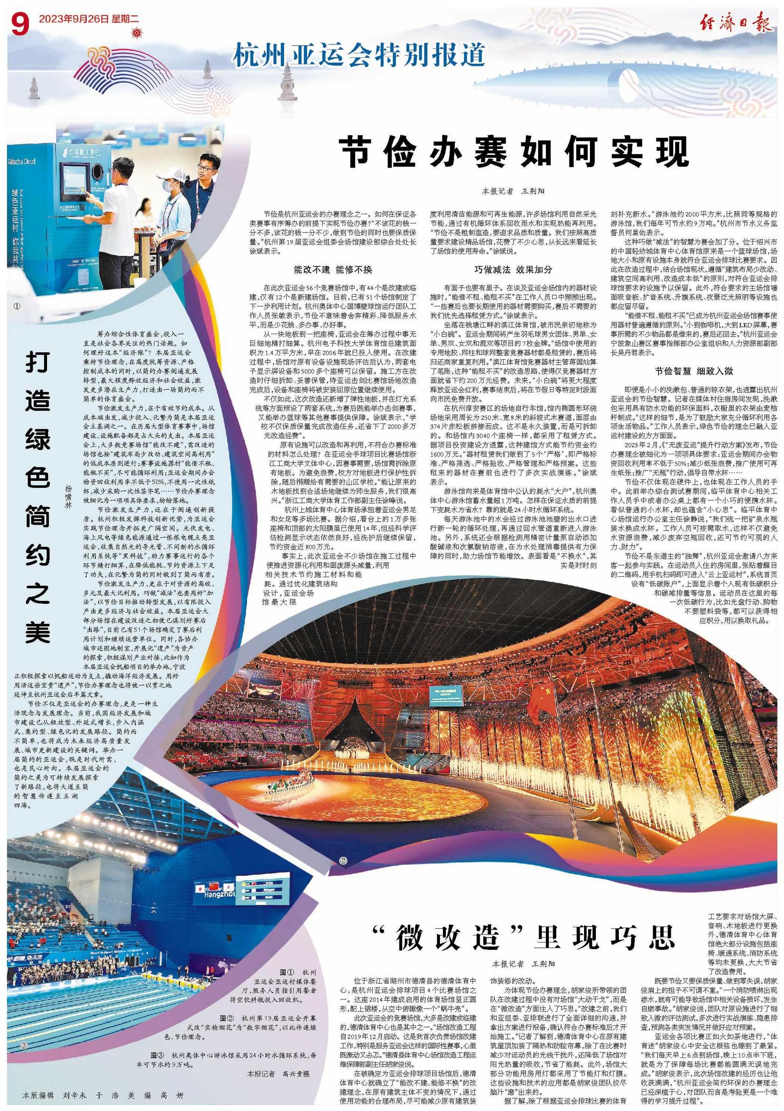 事实上,此次亚运会不少场馆在施工过程中便推进资源化利用和固废源头减量,利用相关技术节约施工材料和能耗。通过优化建筑结构设计,亚运会场馆最大限度利用清洁能源和可再生能源,许多场馆利用自然采光节能,通过有机循环体系回收雨水和实现热能再利用。“节俭不是粗制滥造,要追求品质和质量。我们按照高质量要求建设精品场馆,花费了不少心思,从长远来看延长了场馆的使用寿命。”徐斌说。