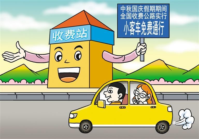 国务院新闻办公室在近日举行的新闻发布会上介绍,2023年中秋、国庆假期从9月29日到10月6日,共8天,全国收费公路继续对7座以下(含7座)小型客车免收通行费,免费时段是9月29日0时到10月6日24时。建议广大旅客朋友规划出行,合理选择出行目的地、出行方式和出行时间,关注出行动态信息、免费通行政策,理性错峰避峰出行。要文明出行,自觉遵守交通场所秩序,按照车站和随车工作人员指引,有序进出站、购票、安检、候车、乘车,共同营造和维护良好出行环境。还要安全出行,自觉选择正规客运车辆出行,乘车期间主动佩戴安全带这个“生命带”,自驾人员要实时关注途经区域的天气变化情况。