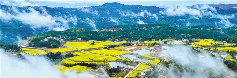 近日拍摄的四川省巴中市通江县广纳镇构花坪村,稻田与村舍相映成景,勾勒出一幅大美画卷。近年来,当地大力推进农田改造、环境整治和美丽宜居乡村建设,推动县域经济快速发展。