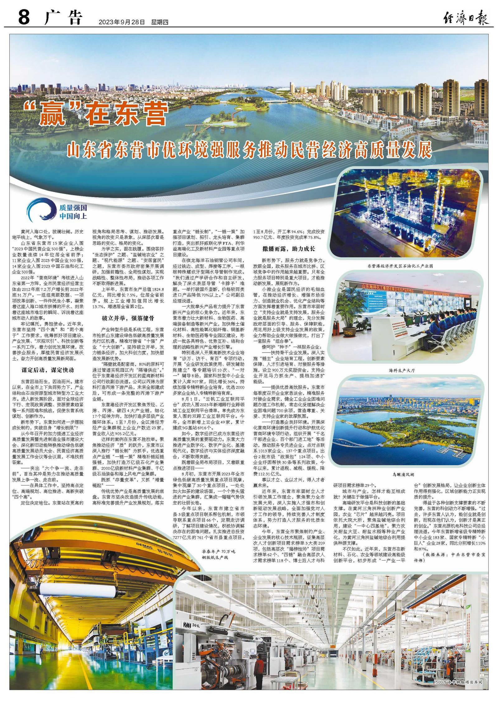 牢记嘱托,勇担使命。近年来,东营市坚持“四个高”和“两个高于”工作要求,统筹抓好项目建设、产业发展、“双招双引”、科技创新等一系列工作,着力创优发展环境,改善涉企服务,厚植民营经济发展沃土,奋力开创高质量发展新局面。