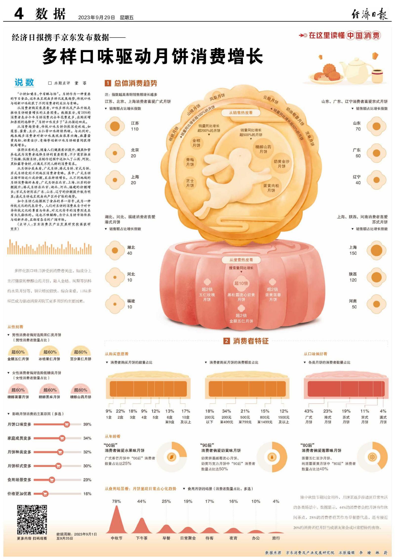 “小饼如嚼月,中有酥与饴”。月饼作为一种重要的节日食品,近年来呈现出多样化发展趋势,传统口味与创新口味收获了不同消费者的关注与青睐。