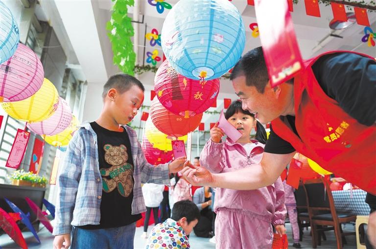 ⑤重庆市北碚缙云集团开展“情暖童心”体验活动,志愿者和孩子们一起猜灯谜,感受中华传统文化魅力。