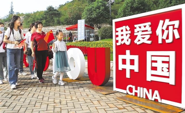 ②江苏省连云港市连云区宿城街道景区,游客在“我爱你中国”的标识前驻足。王健民摄(中经视觉)