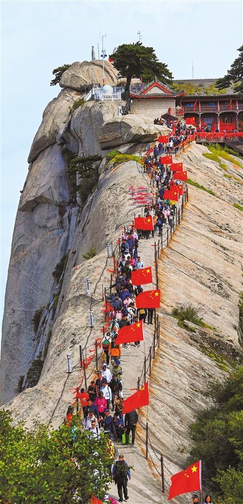 ④陕西省华阴市西岳华山景区五星红旗迎风飘扬。