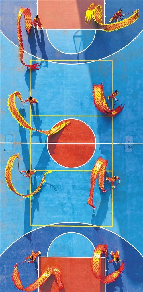 ⑥江西省宜丰县黄垦镇,彩带龙爱好者挥舞彩龙,欢度国庆佳节。