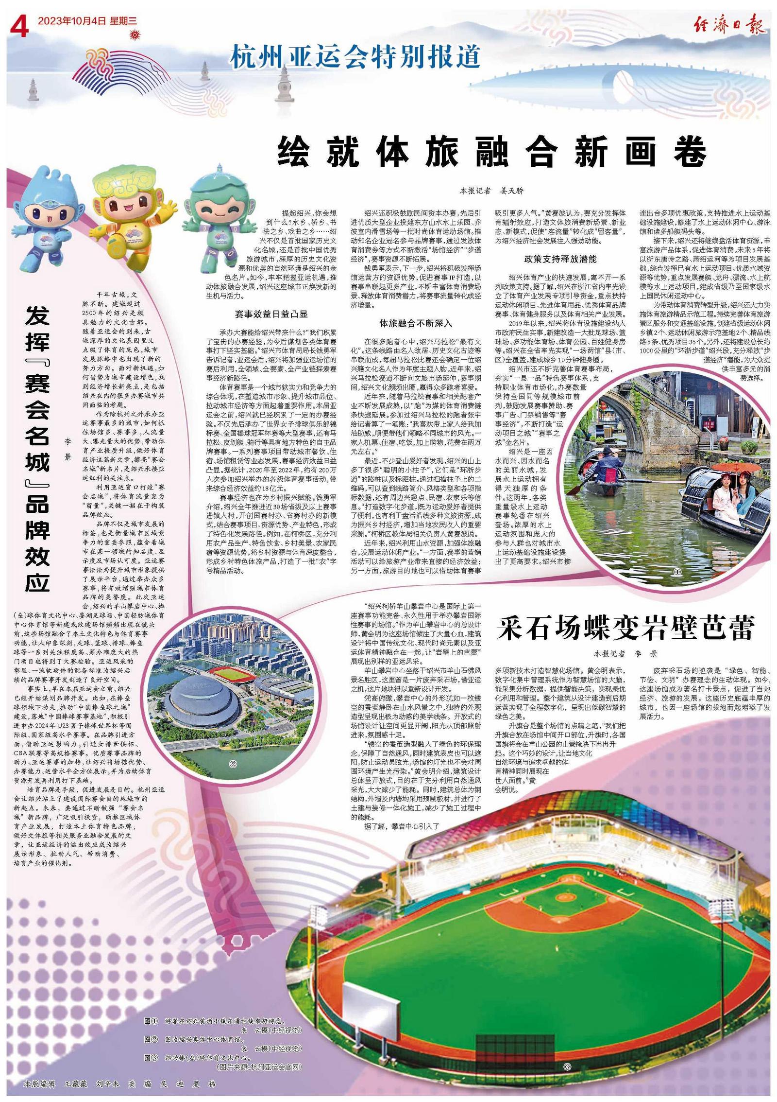 承办大赛能给绍兴带来什么?“我们积累了宝贵的办赛经验,为今后谋划各类体育赛事打下坚实基础。”绍兴市体育局局长钱勇军告诉记者,亚运会后,绍兴将加强亚运场馆的赛后利用,全领域、全要素、全产业链探索赛事经济新路径。