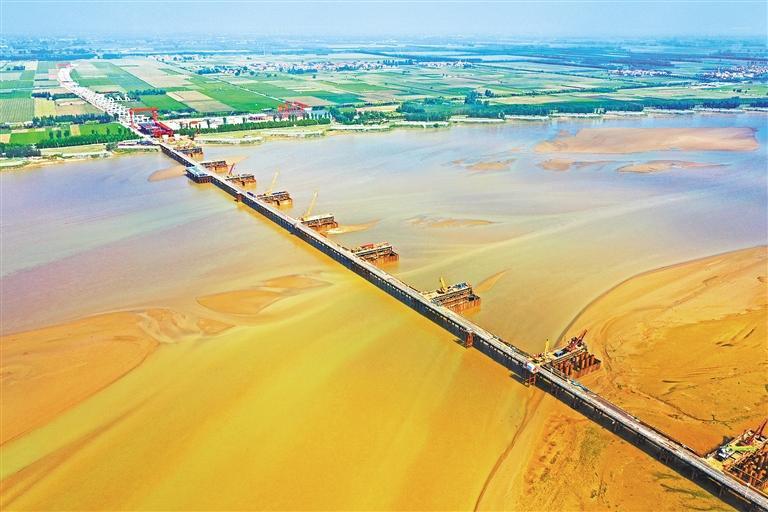 10月3日,河南沁伊高速(焦作市沁阳—洛阳市伊川)孟州黄河特大桥项目建设现场,建设者在中秋国庆假期坚守岗位,加紧施工。沁伊高速是河南省“十四五”规划重要项目,是洛阳都市圈环线公路重要组成部分,线路总长98.99公里,工程造价188.74亿元,计划2025年12月建成通车。白水平摄(中经视觉)