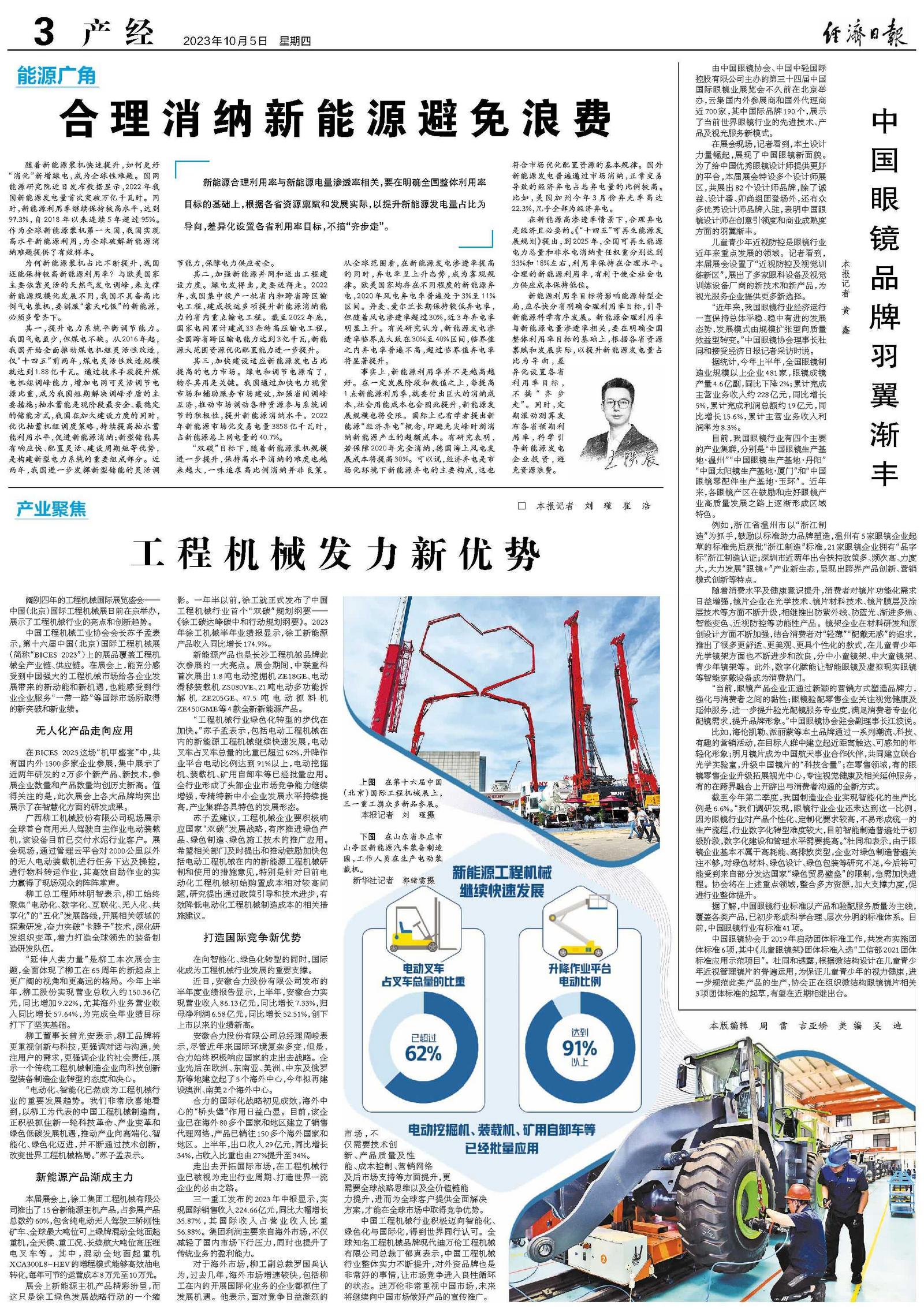 “工程机械行业绿色化转型的步伐在加快。”苏子孟表示,包括电动工程机械在内的新能源工程机械继续快速发展,电动叉车占叉车总量的比重已超过62%,升降作业平台电动比例达到91%以上,电动挖掘机、装载机、矿用自卸车等已经批量应用。全行业形成了头部企业市场竞争能力继续增强,专精特新中小企业发展水平持续提高,产业集群各具特色的发展形态。