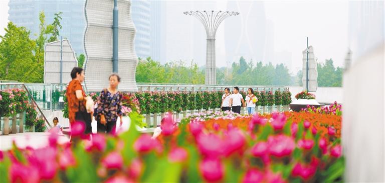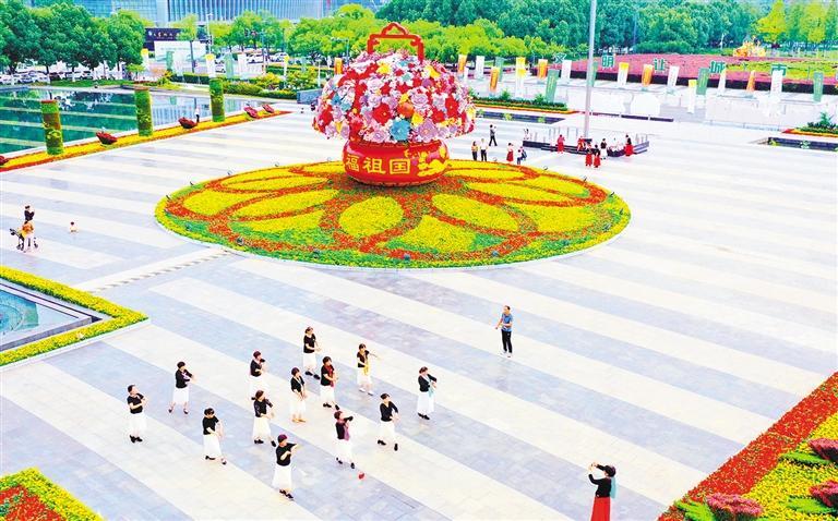 ②江西省南昌市八一广场以“奋进新征程 建功新时代”为主题的立体花卉造型。