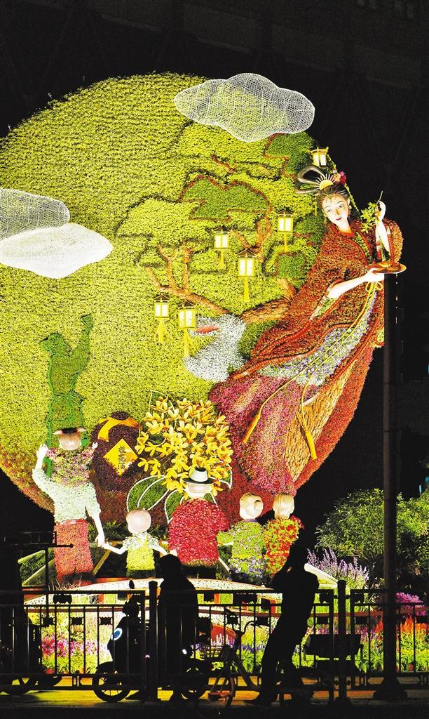 ③位于北京市长安街沿线西单西北角的“花好月圆”花坛。