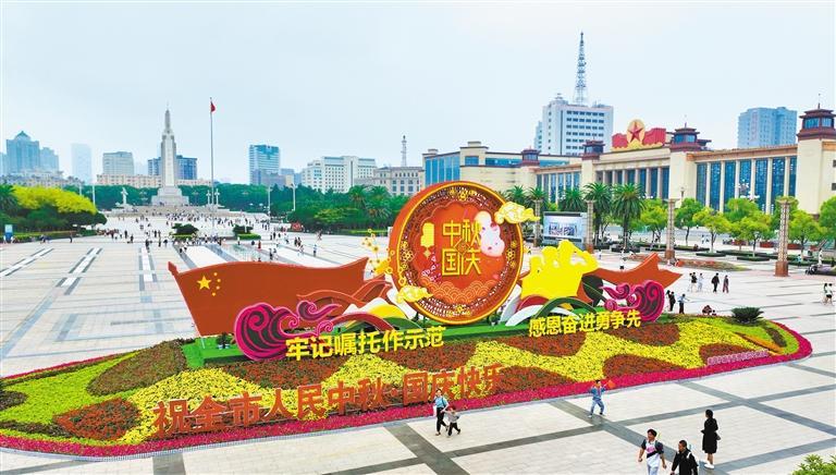⑤安徽省合肥市,“祝福祖国 欢度国庆”主题花篮,营造出欢乐祥和的节日氛围。