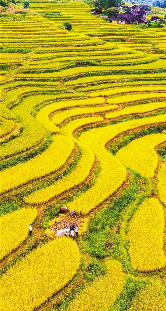 ⑥湖南省东安舜皇山国家森林公园管理局塘家梯田,村民开镰收割。严 洁摄(中经视觉)