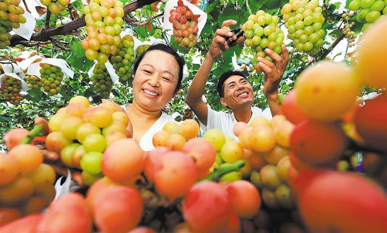 ①安徽省濉溪县四铺镇湖涯村,村民在葡萄园忙采摘。 李 鑫摄(中经视觉)