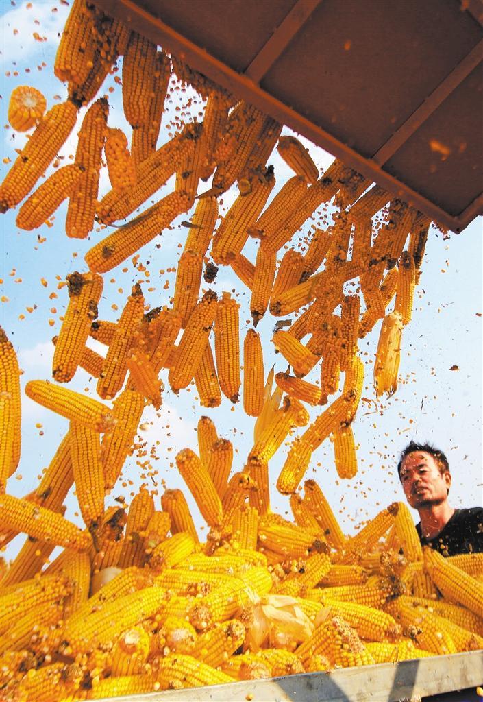 ⑤山东省平邑县地方镇东家庄村,农民将收割的玉米装车。武纪全摄(中经视觉)
