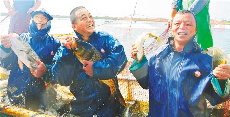⑦村民在江西省樟树市洋湖乡荷园村鱼塘收网捕鱼。 周 亮摄(中经视觉)