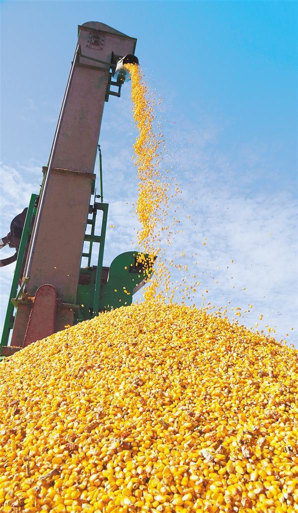 10月5日,在山东省枣庄市西王庄镇付刘耀村,村民正使用脱粒机给玉米脱粒。最新农情调度显示,全国秋粮已收获42.2%。其中,中稻收获过五成,玉米收获过四成,大豆收获近四成。王海楠摄(新华社发)