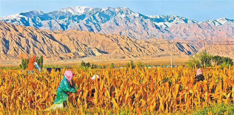 近日,祁连山下的甘肃省张掖市甘州区甘浚镇7.9万亩高标准玉米种子田间,农民正抢抓雨后天晴采收玉米种子。近年来,当地持续推进高标准农田建设,推动机械化、规模化和高效节水化生产作业,提高了农业生产效能。