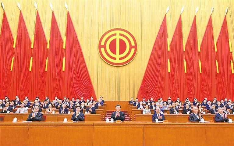 蔡奇表示,党的二十大确立了以中国式现代化全面推进强国建设、民族复兴伟业的中心任务。党的中心任务就是中国工人运动和工会工作的主题和方向。工人阶级要以忠诚可靠赓续工人阶级政治本色,以劳动创造担当工人阶级使命任务,以过硬本领展现工人阶级时代风采,以团结奋斗弘扬工人阶级崇高品格。各级工会要深入学习贯彻习近平新时代中国特色社会主义思想,深入学习贯彻习近平总书记关于工人阶级和工会工作的重要论述,忠诚党的事业、竭诚服务职工,始终坚持正确政治方向,广泛凝聚团结奋斗伟力,切实提高维权服务质量,有效发挥桥梁纽带作用,推动党中央决策部署落地见效,奋力谱写党的工运事业崭新篇章。(致词全文见二版)