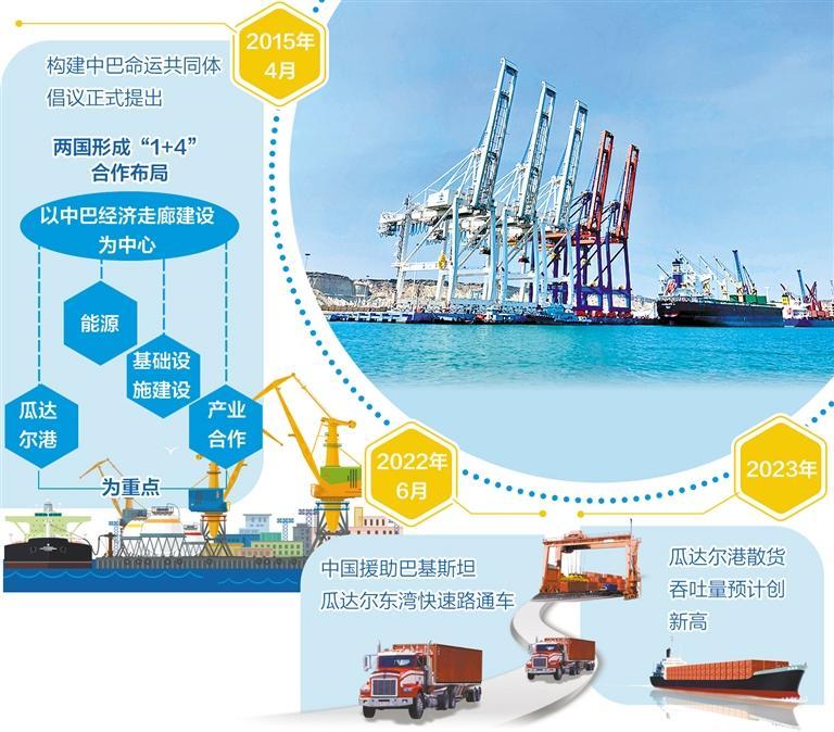 8年间,瓜达尔港始终是中巴经济走廊发展的重中之重。中巴经济走廊对巴基斯坦经济社会发展的推动作用不断凸显。2022年6月,中国援助巴基斯坦瓜达尔东湾快速路通车。作为中巴经济走廊早期收获项目,该道路将瓜达尔港区与巴基斯坦国道相连,打通了瓜达尔港和卡拉奇之间的交通运输通道。道路通车后,瓜达尔港吞吐量显著提升,排队等候前往港区装卸的卡车在东湾快速路上排起长龙。据运营该港口的中方企业介绍,2023年瓜达尔港散货吞吐量预计将创造历史新高。