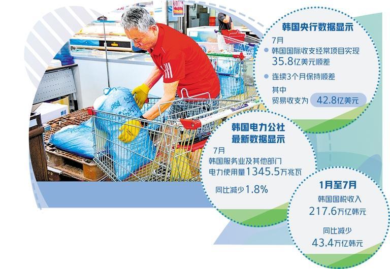 然而,最能真切反映韩国国内经济实际状况的用电量数据却并不乐观。韩国电力公社最新数据显示,7月,韩国服务业及其他部门的电力使用量为1345.5万兆瓦,同比减少1.8%。该数据反映的是小工商业者经营的普通店铺营业用电量,可以间接观察韩国的内需景气度。如果数值增加,意味着消费扩大和内需激活;如果数值降低,则须警惕内需放缓。