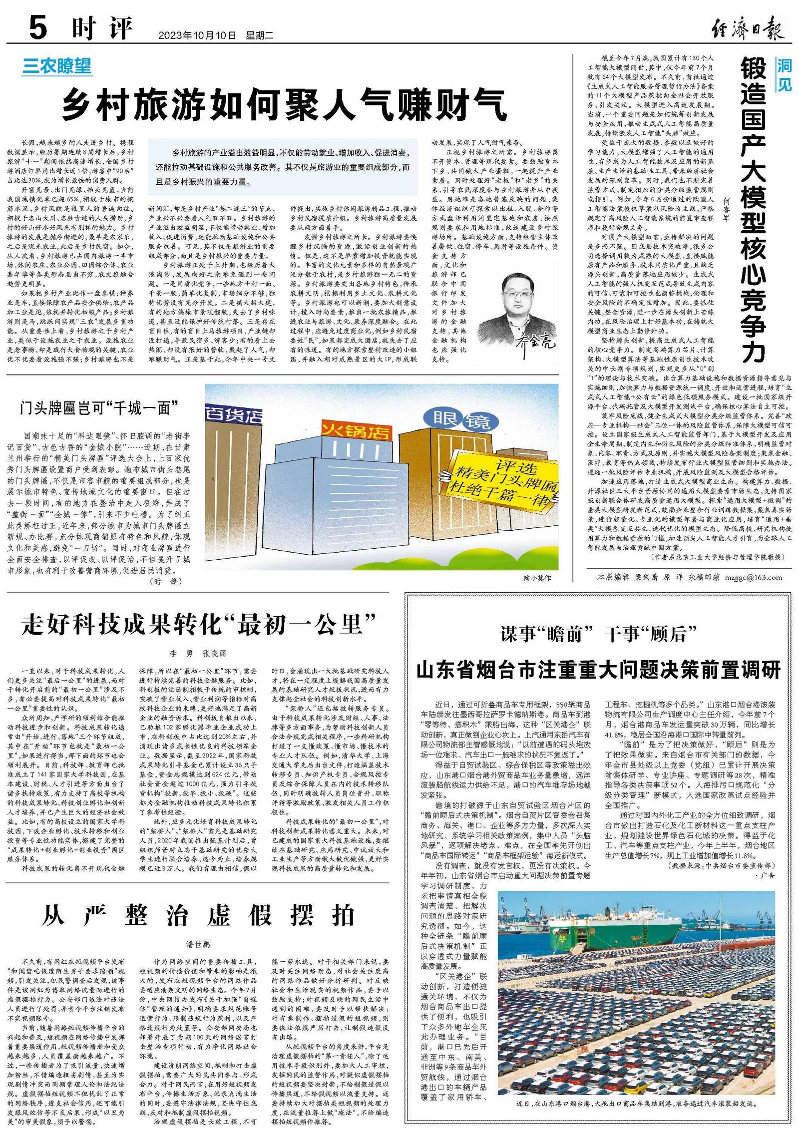 发掘乡村旅游之所长。乡村旅游要唤醒乡村沉睡的资源,激活创业创新的热情。但是,这不是单靠增加投资就能实现的。丰富的文化元素和多样的自然景观广泛分散于农村,是乡村旅游独一无二的资源。乡村旅游要突出各地乡村特色,传承农耕文明,挖掘利用乡土文化、农耕文化等。乡村旅游也可以新潮,要加大创意设计,植入时尚要素,推出一批农旅精品,推进农业与旅游、文化、康养深度融合。在此过程中,应避免过度商业化,例如乡村民宿要姓“民”,如果都变成大酒店,就失去了应有的味道。有的地方探索整村改造的小组团,并融入相对成熟景区的大IP,形成联动发展,实现了人气财气兼备。