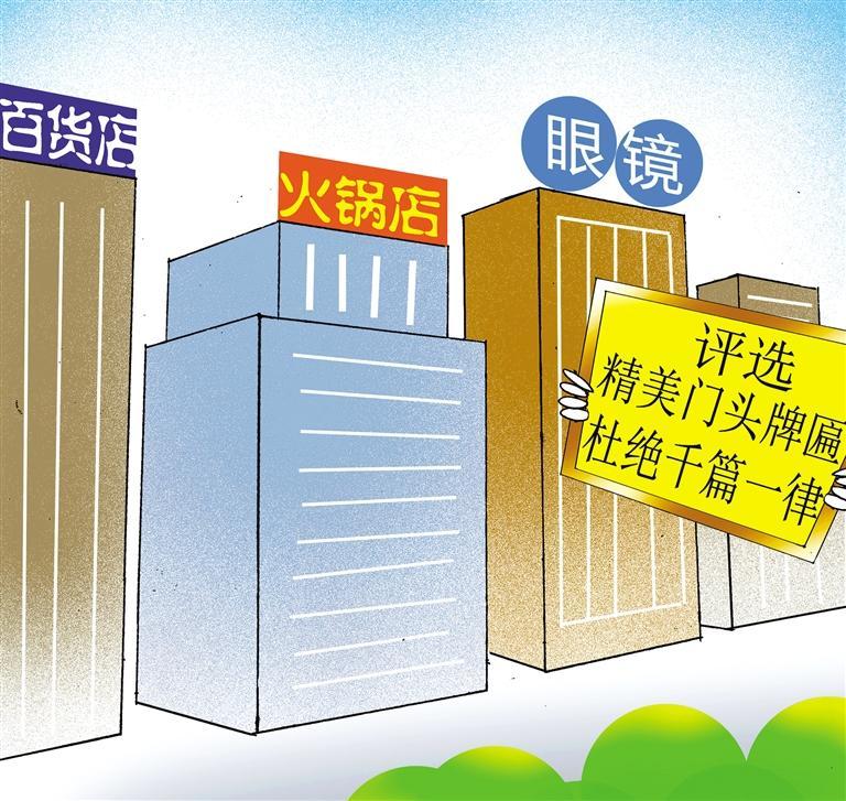 国潮味十足的“科达眼镜”、怀旧腔调的“老街李记百货”、古色古香的“金城小院”……近期,在甘肃兰州举行的“精美门头牌匾”评选大会上,上百家优秀门头牌匾设置商户受到表彰。遍布城市街头巷尾的门头牌匾,不仅是市容市貌的重要组成部分,也是展示城市特色、宣传地域文化的重要窗口。但在过去一段时间,有的地方在整治中走入极端,弄成了“整街一面”“全城一律”,引来不少吐槽。为了纠正此类矫枉过正,近年来,部分城市为城市门头牌匾立新规、办比赛,充分体现商铺原有特色和风貌,体现文化和美感,避免“一刀切”。同时,对商业牌匾进行全面安全排查,以评促改、以评促治,不但提升了城市形象,也有利于改善营商环境,促进居民消费。