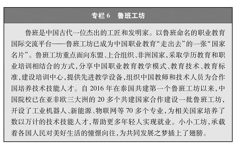 教育交流合作广泛深入。中国发布《推进共建“一带一路”教育行动》,推进教育领域国际交流与合作。截至2023年6月底,中国已与45个共建国家和地区签署高等教育学历学位互认协议。中国设立“丝绸之路”中国政府奖学金,中国地方省份、中国香港特别行政区、中国澳门特别行政区和高校、科研机构也面向共建国家设立了奖学金。中国院校在132个共建国家办有313所孔子学院、315所孔子课堂;“汉语桥”夏令营项目累计邀请100余个共建国家近5万名青少年来华访学,支持143个共建国家10万名中文爱好者线上学习中文、体验中国文化。中国院校与亚非欧三大洲的20多个共建国家院校合作建设一批鲁班工坊。中国与联合国教科文组织连续7年举办“一带一路”青年创意与遗产论坛及相关活动;合作设立丝绸之路青年学者资助计划,已资助24个青年学者研究项目。中国政府原子能奖学金项目已为26个共建国家培养了近200名和平利用核能相关专业的硕博士研究生。共建国家还充分发挥“一带一路”高校战略联盟、“一带一路”国际科学组织联盟等示范带动作用,深化人才培养和科学研究国际交流合作。