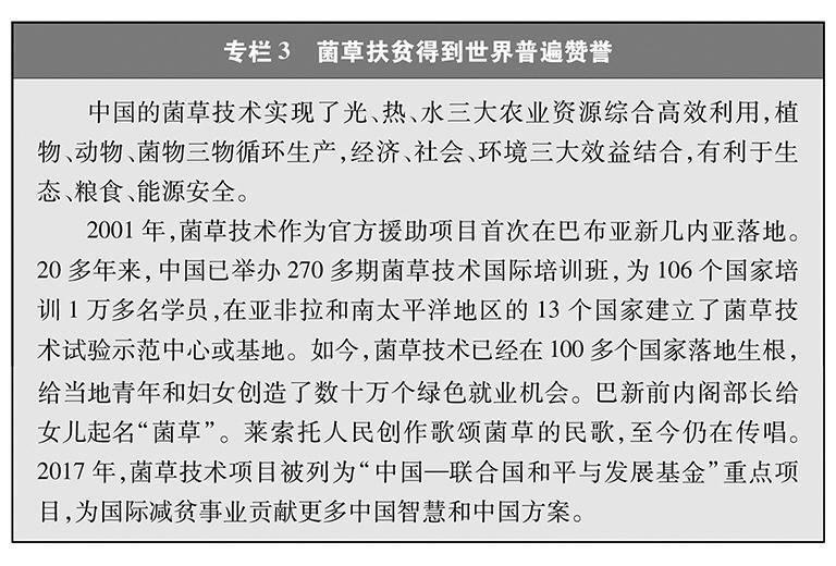 增强共建国家减贫能力。发展中国家仍面临粮食问题。中国积极参与全球粮农治理,与相关国家发布《共同推进“一带一路”建设农业合作的愿景与行动》,与近90个共建国家和国际组织签署了100余份农渔业合作文件,与共建国家农产品贸易额达1394亿美元,向70多个国家和地区派出2000多名农业专家和技术人员,向多个国家推广示范菌草、杂交水稻等1500多项农业技术,帮助亚洲、非洲、南太平洋、拉美和加勒比等地区推进乡村减贫,促进共建国家现代农业发展和农民增收。促进就业是减贫的重要途径。在共建“一带一路”过程中,中国与相关国家积极推进产业园区建设,引导企业通过开展高水平产业合作为当地居民创造就业岗位,实现了“一人就业,全家脱贫”。麦肯锡公司的研究报告显示,中国企业在非洲雇员本地化率达89%,有效带动了本地人口就业。世界银行预测,到2030年,共建“一带一路”相关投资有望使共建国家760万人摆脱极端贫困、3200万人摆脱中度贫困。