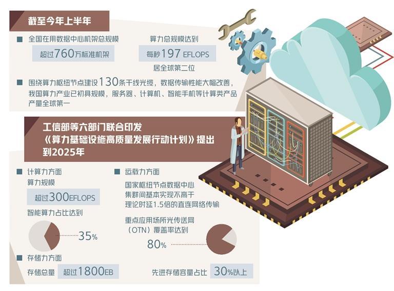 近日,工业和信息化部等六部门联合印发《算力基础设施高质量发展行动计划》,从计算力、运载力、存储力以及应用赋能4个方面提出了到2025年的发展量化指标。随着AI加速技术融合,算力需求持续爆发,企业纷纷扩大算力供给。有报告预测,2020年至2030年,人工智能驱动的算力将增长500倍,通用算力将增长10倍。算力已经成为智慧社会的重要基石。如何健全算力网、解决算力难、用好算力券、充分激活算力脑,成为当下数字时代产业经济发展的关键。