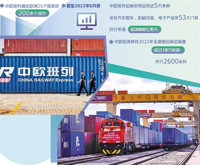 “钢铁驼队”满载货物,将亚欧大陆上的200余个城市紧密相连。从装卸、编组、发运、调度到最后的过境通关,飞驰的列车背后,各环节安全运输如何保障?海陆通道如何衔接?如何高效驶出国门?在中欧班列开行10周年之际,记者沿中欧班列东线出发,进行调研采访。