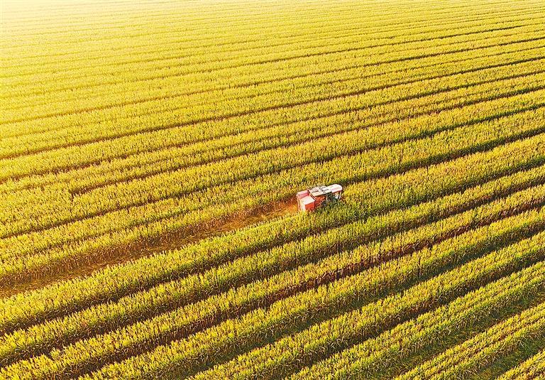 10月9日,山东省乐陵市农业社会化服务组织员工在大豆玉米带状复合种植基地收获玉米。近期,乐陵市87.74万亩玉米进入收获高峰期,当地联系农业社会化服务组织等力量,为农户提供耕种管收定制化托管服务,统一实施玉米收割作业,确保颗粒归仓。贾 鹏摄(中经视觉)
